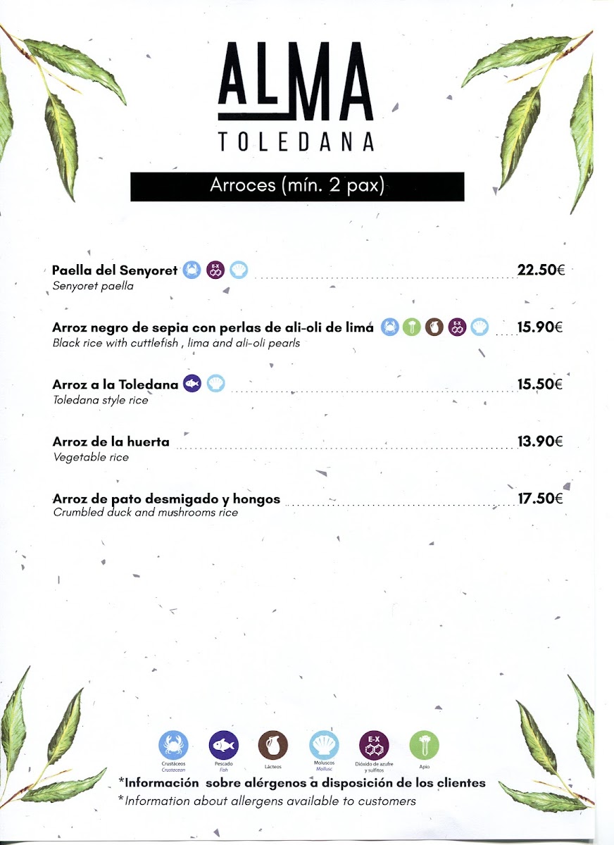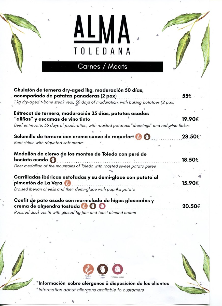 Restaurante Alma Toledana Menu